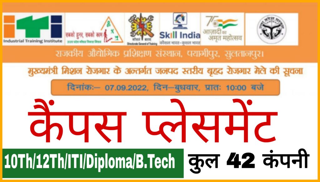 42 Company Rojgar Mela 2022- दिनांक 7 सितंबर 2022 को प्रातः 10 बजे राजकीय औद्योगिक प्रशिक्षण संस्थान, पयागीपुर, सुलतानपुर में बृहद रोजगार मेले का आयोजन होने जा रहा हैं | जिसमे कुल 42 कंपनिया भाग लेगी |